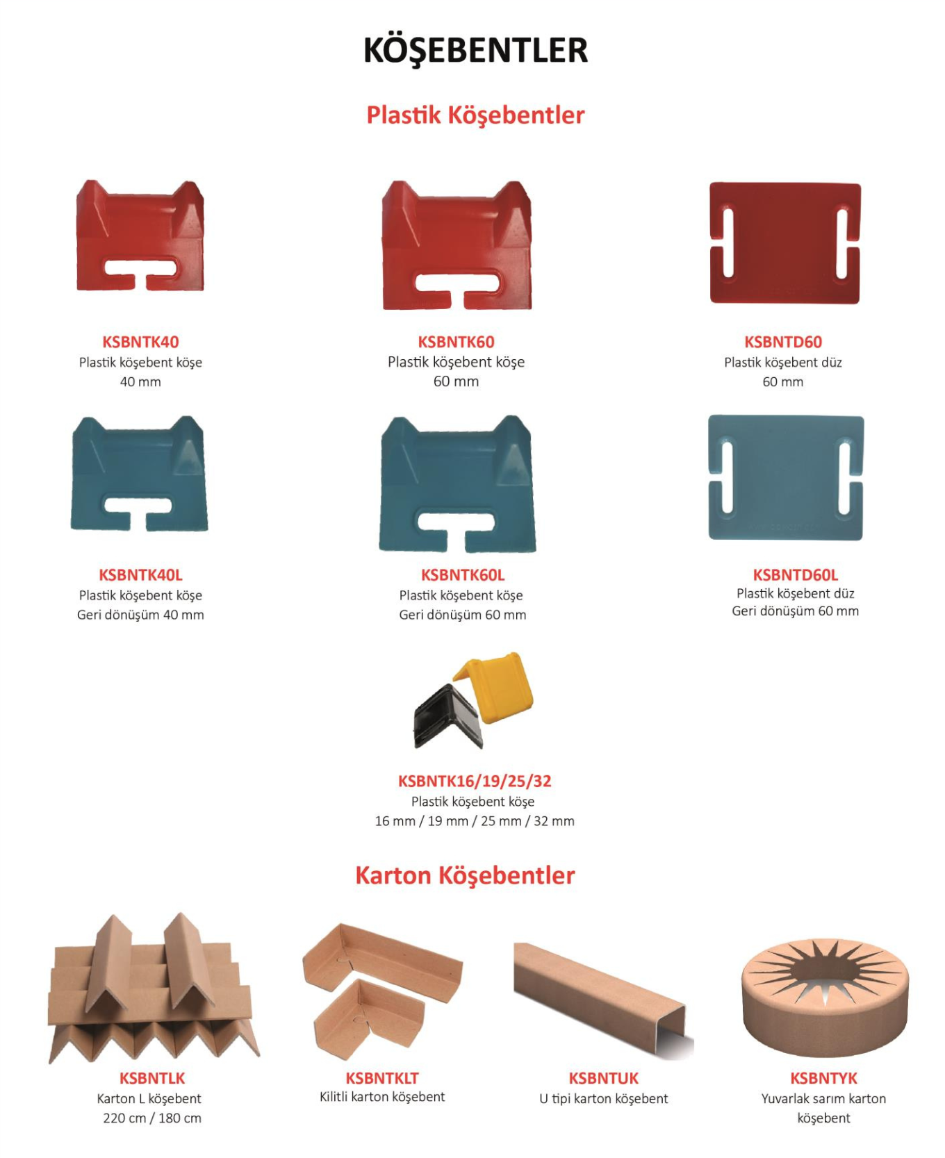 Farklı boyut ve malzeme seçeneklerine sahip köşebentlerimiz, yük türüne göre uyum sağlar. Plastik, karton veya metal gibi çeşitli materyallerden üretilen seçeneklerimiz sayesinde hem hafif hem de ağır yüklerde kullanabilirsiniz. Köşebentler, özellikle paletli yüklerde, mobilya taşımacılığında ve hassas malzemelerin paketlenmesinde ideal çözümler sunar.