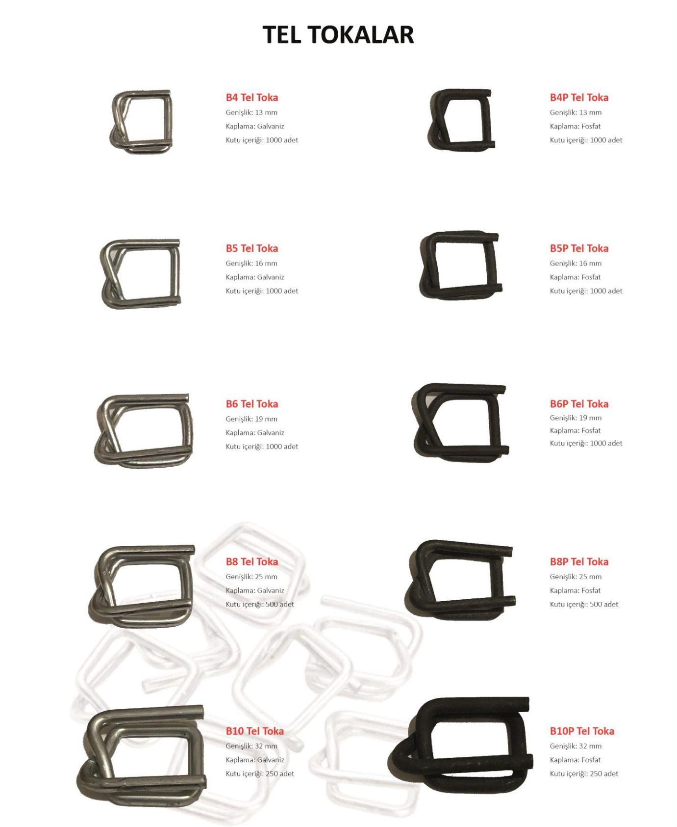 Ürünlerimiz, paslanmaz çelik veya galvanizli malzemeden üretilmiştir. Bu sayede zorlu çevre koşullarına karşı dirençlidir ve uzun ömürlüdür. Tel tokalar, özellikle deniz taşımacılığı, ağır yük lojistiği ve endüstriyel uygulamalarda sıkça tercih edilir. Farklı boyut ve kalınlık seçenekleri sayesinde çeşitli kayışlarla uyumlu olarak kullanılabilir.