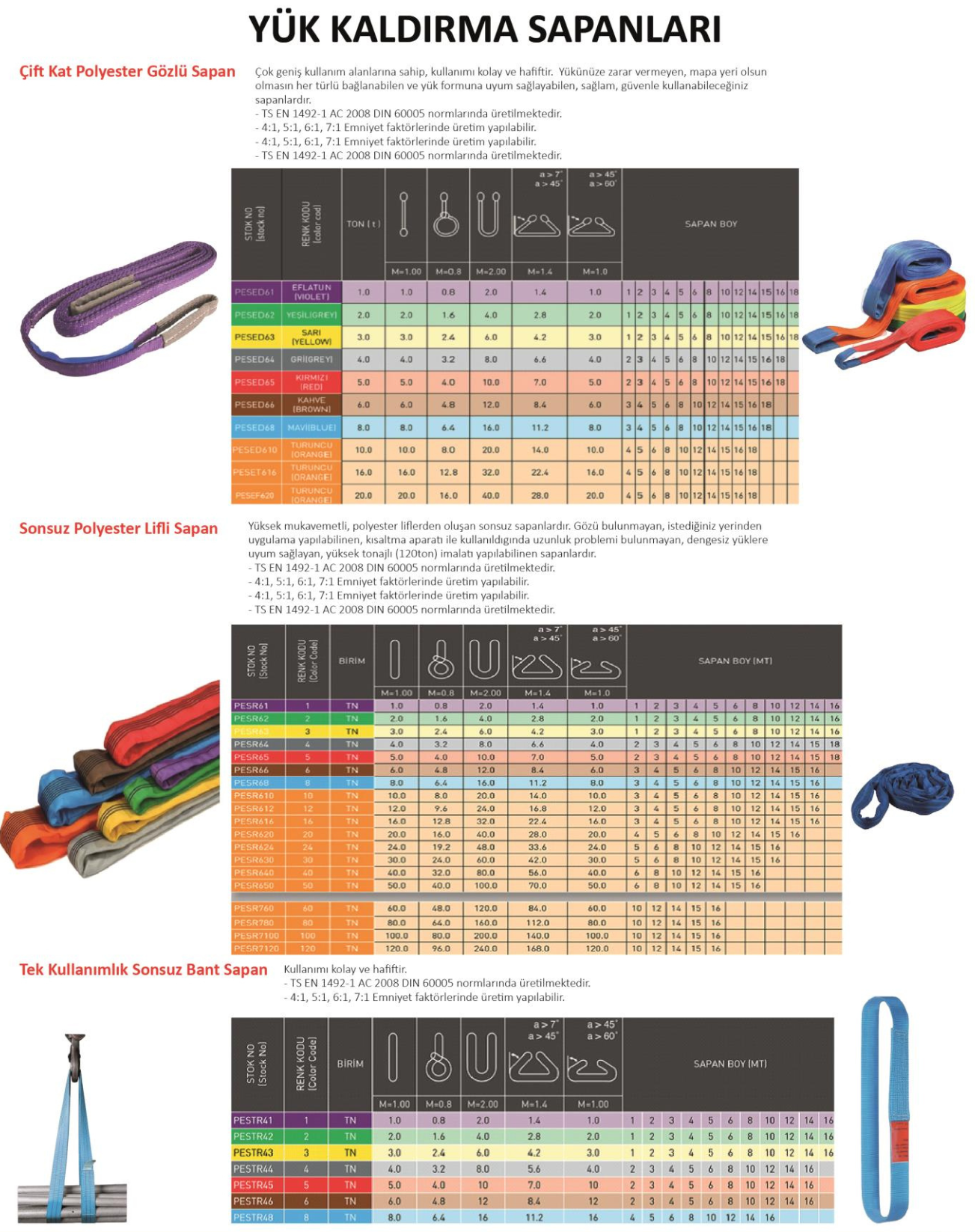Farklı taşıma kapasitelerine ve uzunluk seçeneklerine sahip sapanlarımız, yüksek kaliteli polyester veya çelik malzemelerden üretilmiştir. Bu özellikleri sayesinde her türlü endüstriyel, lojistik ve denizcilik uygulamasında kullanılabilir. Yüksek dayanıklılığı ve esnek yapısıyla hem hassas hem de ağır yüklerde güvenli bir çözüm sunar.